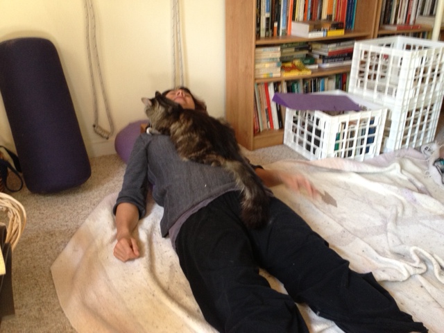 Babies are sweet, dogs are divine, and men can be delicious, but a cat purring away on your chest, or nestling all night under the covers in the crook of your arm, its heart beating next to yours, its dear little cat head tucked under your chin, its sharp claws occasionally digging into your flesh–reminding you that you are cuddling with a wild creature–is bliss on Earth! There’s nothing else like it in this world!