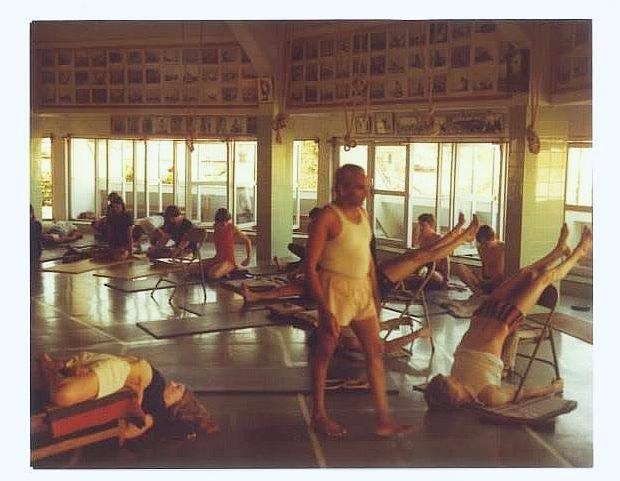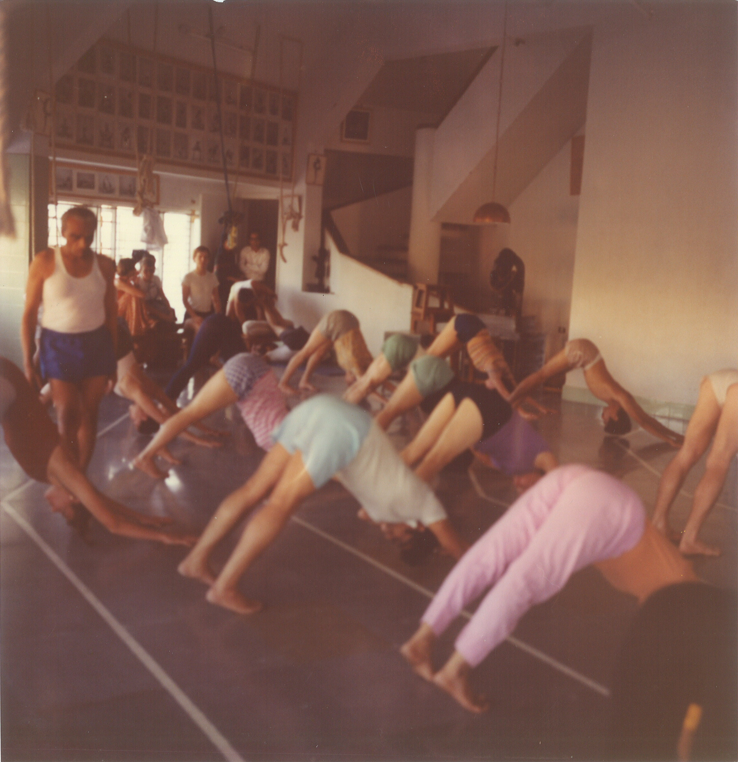school that Krishnamurti founded with Aldous Huxley and others. The Krishnamurti Talks were held in the Oak Grove adjacent to the school. Many of Iyengar’s early students–Ramanand Patel, Larry Hattlet, and others–attended the K Talks in Ojai, and they would sometimes spontaneously come to my Ojai Yoga Center and teach my classes. (Hundreds of people sat on the ground during these outdoor K talks, and I could